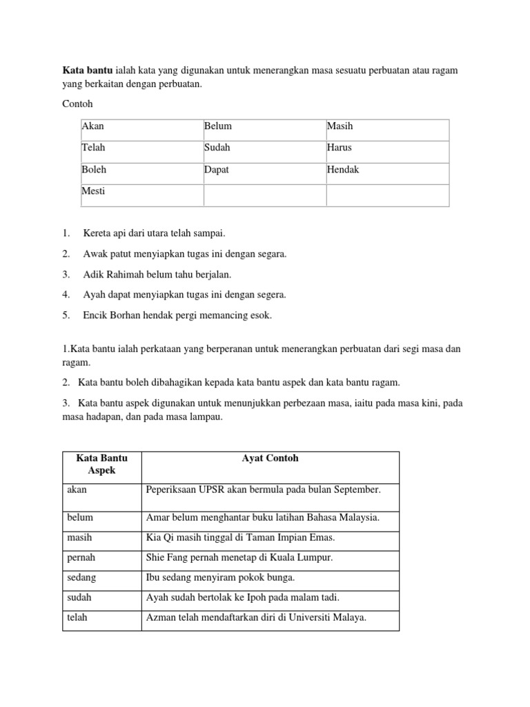 Kata pangkal ayat ialah perkataan yang hadir di bahagian hadapan ayat. Kata bantu boleh digandingka. I Susunan ayat aktif.